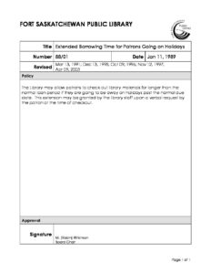 Home > Documents & Policies > policy-88-01 – Extended Borrowing Time for Patrons Going on Holidays – 2003 Apr 09
